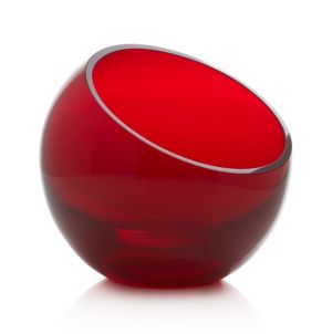 Handmade glass spheres are cut at an angle and polished for a modern look and easy access to snacks, candy, candles or floating blossoms.