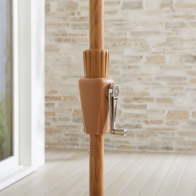 The perfect complement to our teak outdoor table, this sturdy aluminum umbrella frame has a wood-like powdercoat finish. The frame's crank opens and closes the umbrella, which has an easy-tilt feature that allows you to follow the sun all day long. Frame fits all of our umbrella stands and 6' round umbrella canopies (sold separately). A collar around the pole turns to use the tilt function.
