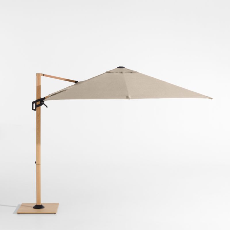 9' Square Canvas Flax Sunbrella® Cantilever Outdoor Patio Umbrella with Faux Wood Metal Frame