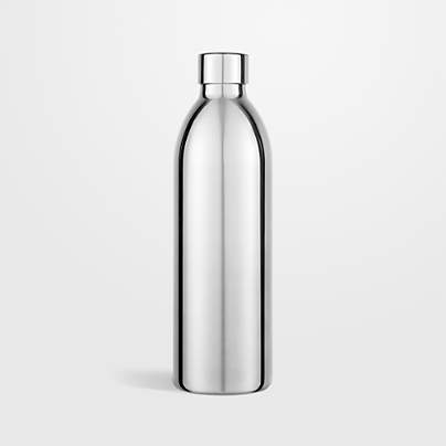 Sparkle your own water with this streamlined water carbonator constructed of polished stainless steel. A striking yet understated presence on your kitchen countertop, the compact sparkling water maker fits in anywhere, while the slender proportions and stainless steel accents are elegant and modern. Ultra-simple operation—twist bottle on, press lever, release lever and twist bottle off—makes carbonating water a breeze. The precision nozzle releases CO2 in a calm, controlled spray for efficient absorption and optimal bubble size. With its classic curves and polished stainless steel lid and base, the included one-liter bottle looks sleek on the table or in the fridge.