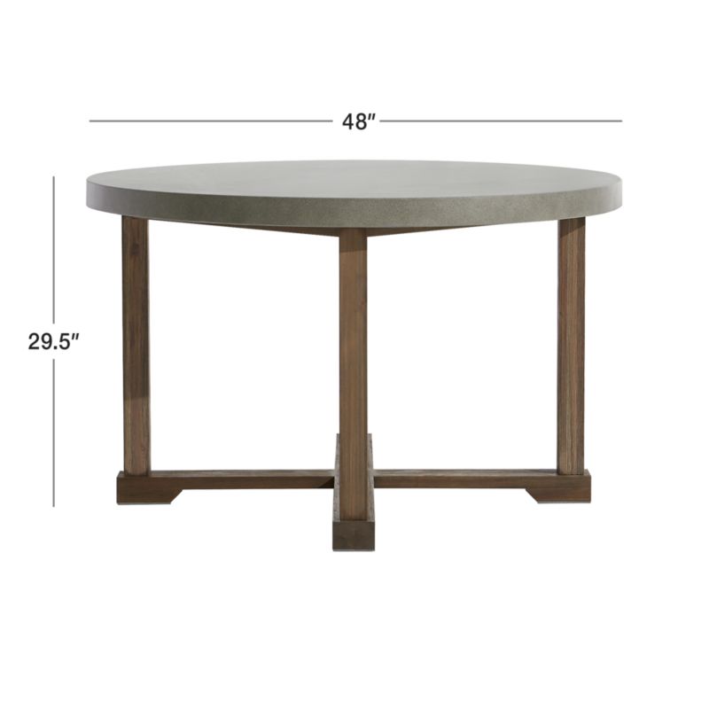 The casual, industrial beauty of concrete offers modern contrast to gorgeously grained acacia wood for an outdoor dining table with serious style and substance. Rising from an X-shaped base boasting mortise-and-tenon joinery, four sturdy acacia posts kiln-dried for strength and durability support the tabletop. Finished by hand and sealed for optimal weather resistance, the round concrete top provides room for four.