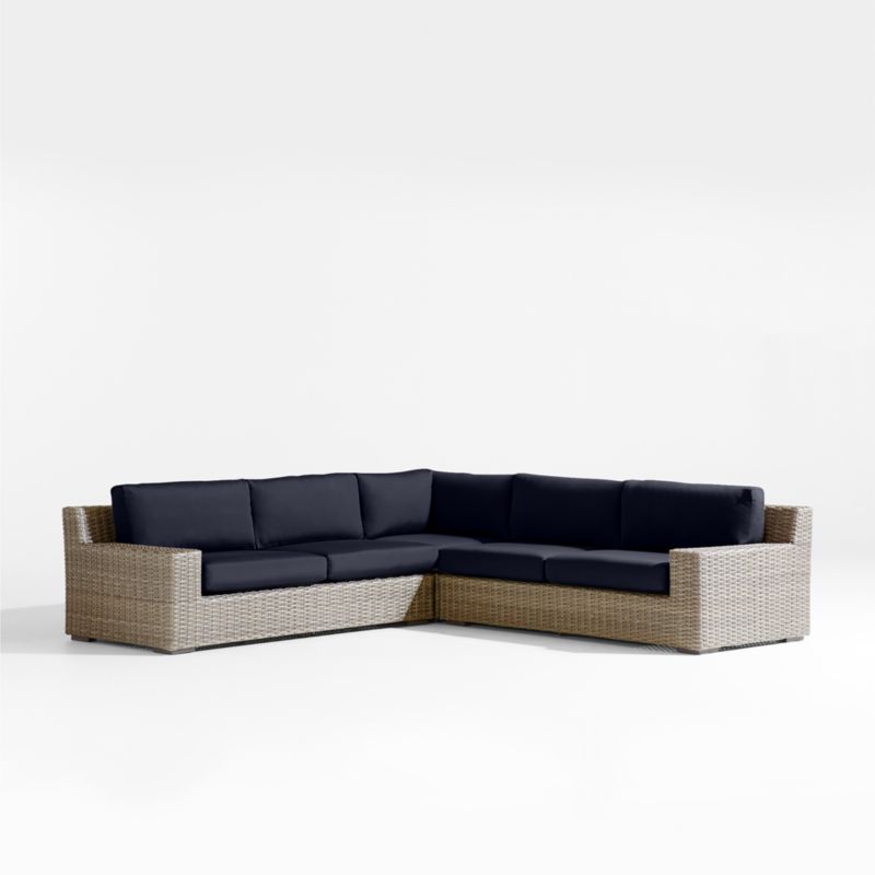 Abaco Resin Wicker 3-Piece L-Shaped Outdoor Sectional Sofa with Canvas Navy Sunbrella ® Cushions