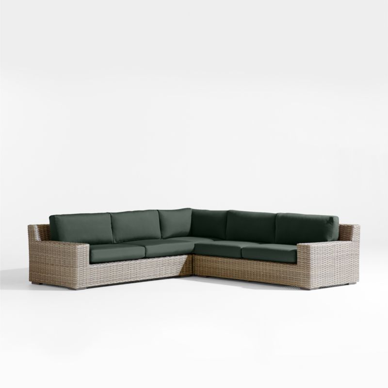 Abaco Resin Wicker 3-Piece L-Shaped Outdoor Sectional Sofa with Cast Ivy Sunbrella ® Cushions