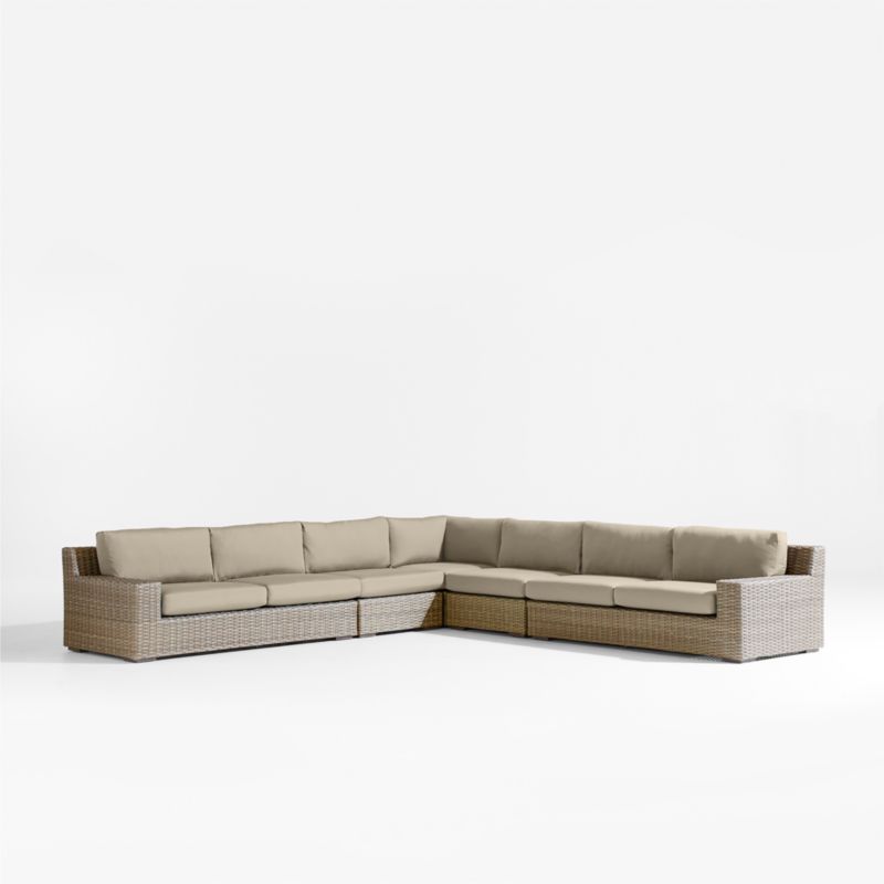 Abaco Resin Wicker 5-Piece L-Shaped Outdoor Sectional Sofa with Canvas Flax Sunbrella ® Cushions