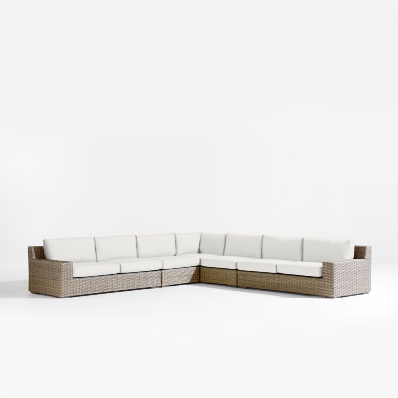 Abaco Resin Wicker 5-Piece L-Shaped Outdoor Sectional Sofa with Canvas White Sunbrella ® Cushions