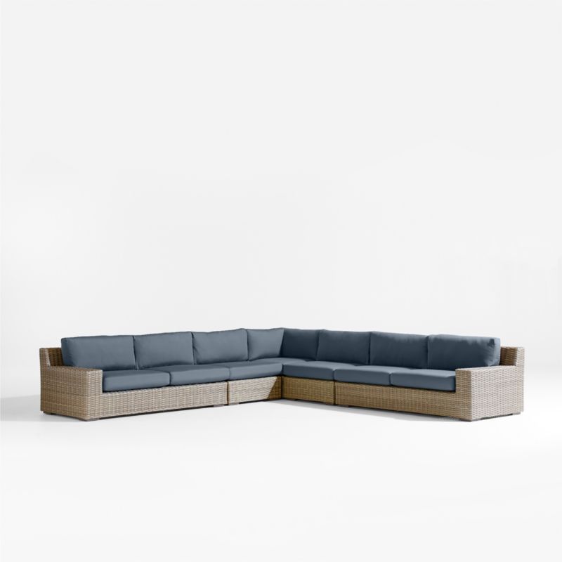 Abaco Resin Wicker 5-Piece L-Shaped Outdoor Sectional Sofa with Cast Harbor Sunbrella ® Cushions