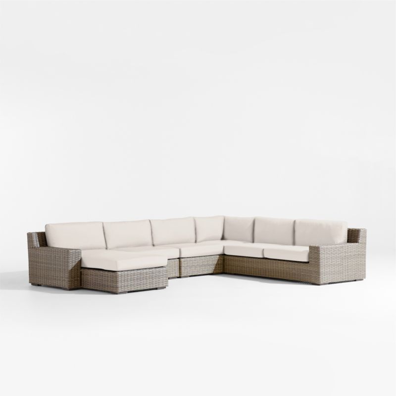 Abaco Resin Wicker 5-Piece Left-Arm Chaise Outdoor Sectional Sofa with Canvas Canvas Sunbrella ® Cushions