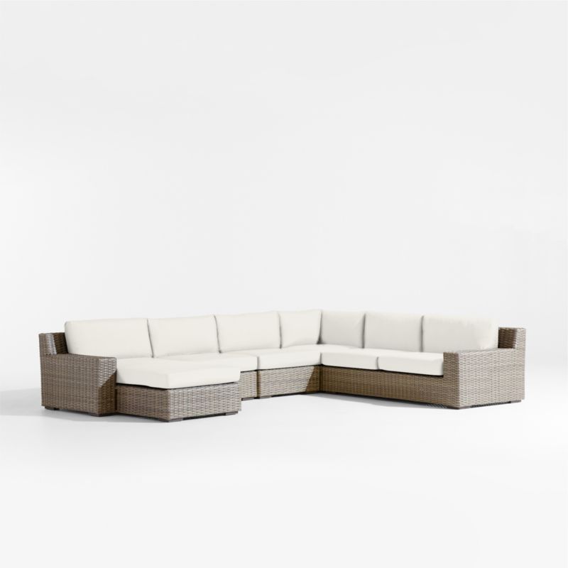 Abaco Resin Wicker 5-Piece Left-Arm Chaise Outdoor Sectional Sofa with Canvas Natural Sunbrella ® Cushions