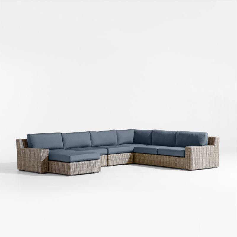 Abaco Resin Wicker 5-Piece Left-Arm Chaise Outdoor Sectional Sofa with Cast Harbor Sunbrella ® Cushions