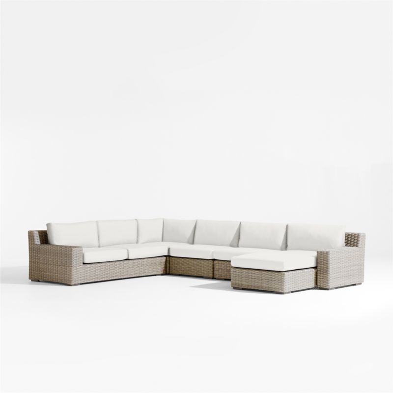 Abaco Resin Wicker 5-Piece Right-Arm Chaise Outdoor Sectional Sofa with Canvas White Sunbrella ® Cushions