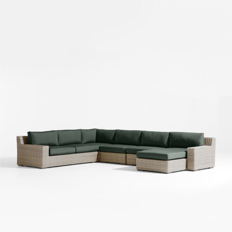 Abaco Resin Wicker 5-Piece Right-Arm Chaise Outdoor Sectional Sofa with Cast Ivy Sunbrella ® Cushions