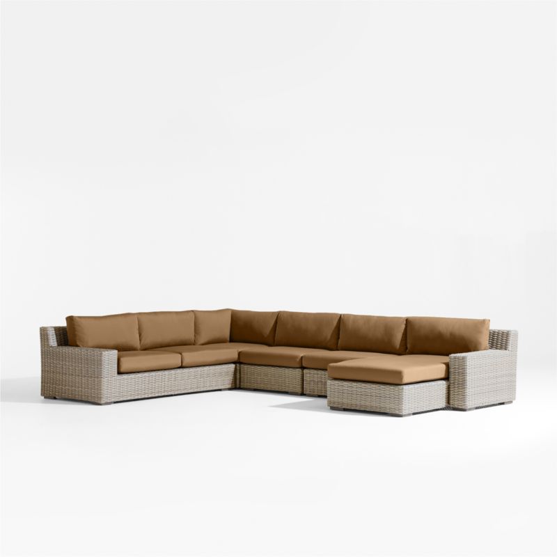 Abaco Resin Wicker 5-Piece Right-Arm Chaise Outdoor Sectional Sofa with Cast Teak Sunbrella ® Cushions