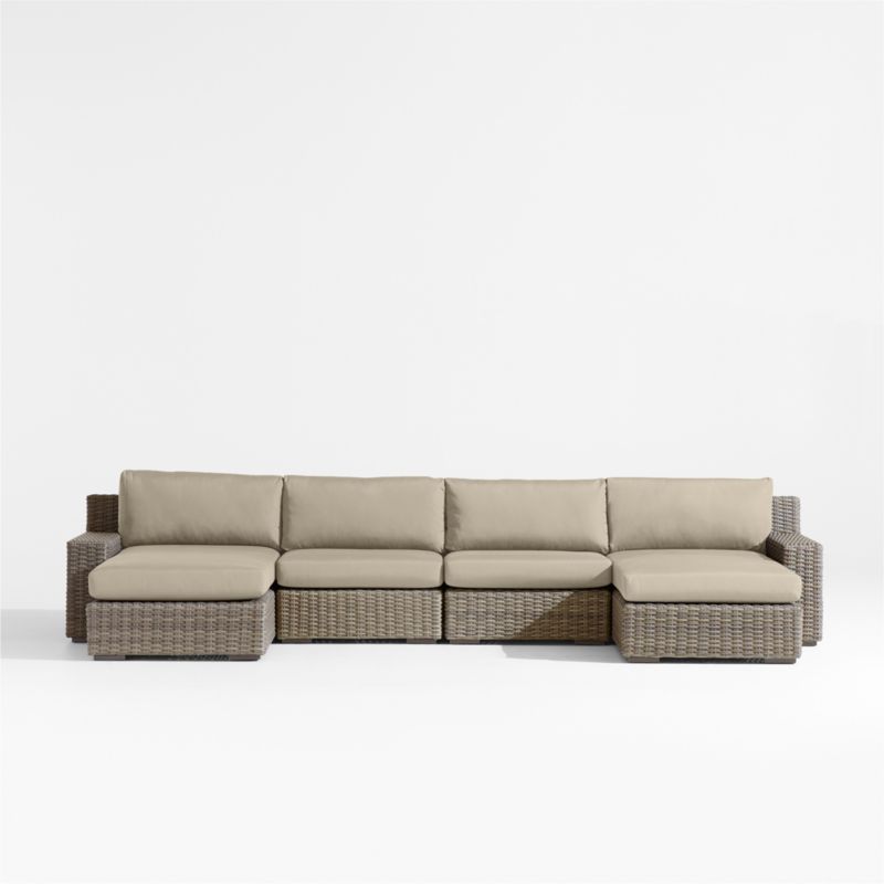 Abaco Resin Wicker Double Chaise Outdoor Sectional Sofa with Canvas Flax Sunbrella ® Cushions