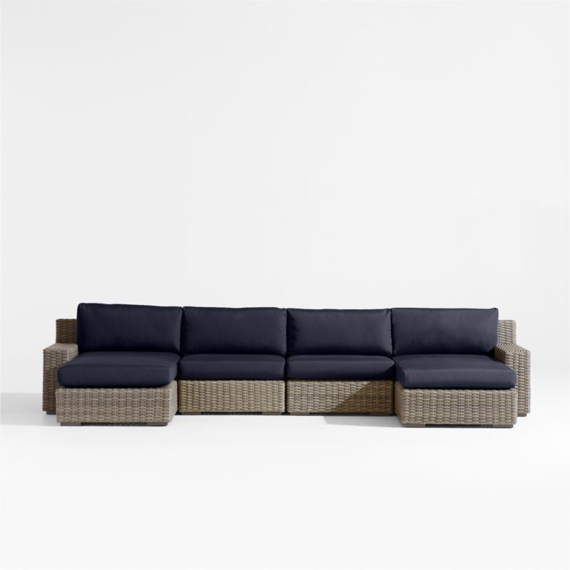 Abaco Resin Wicker Double Chaise Outdoor Sectional Sofa with Canvas Navy Sunbrella ® Cushions