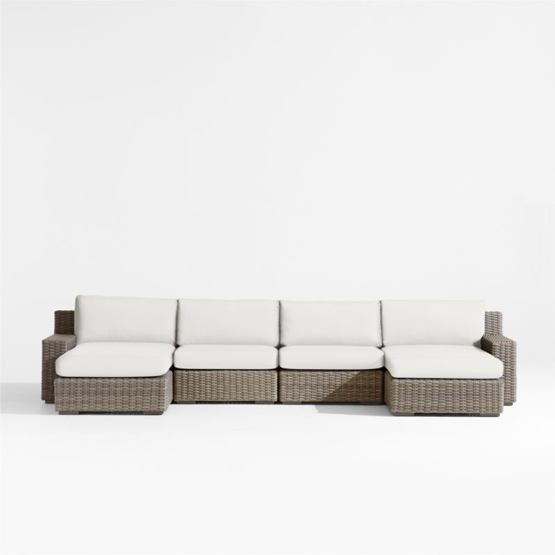 Abaco Resin Wicker Double Chaise Outdoor Sectional Sofa with Canvas White Sunbrella ® Cushions