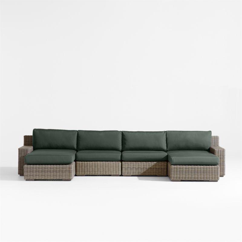 Abaco Resin Wicker Double Chaise Outdoor Sectional Sofa with Cast Ivy Sunbrella ® Cushions