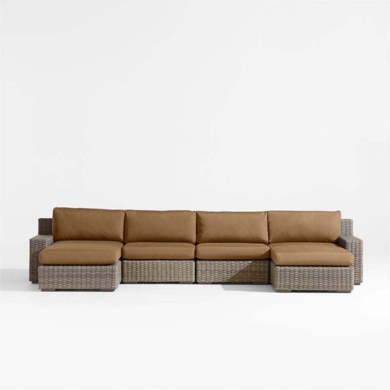 Abaco Resin Wicker Double Chaise Outdoor Sectional Sofa with Cast Teak Sunbrella ® Cushions