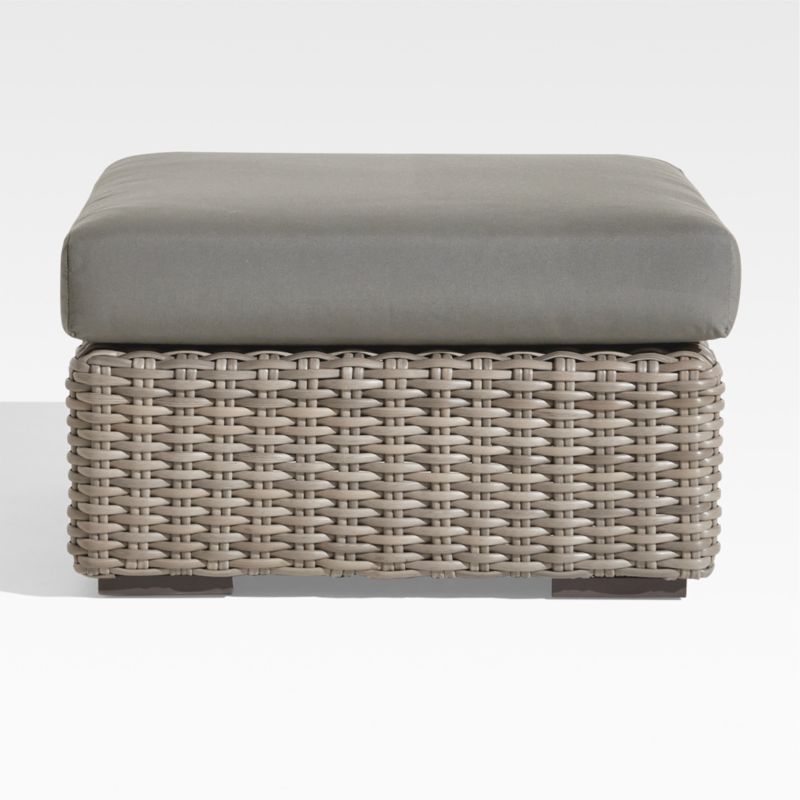 A cushion covered in fade-, stain-, water- and mildew-resistant Sunbrella acrylic adds an extra layer of comfort. The Abaco Outdoor Ottoman with Graphite Sunbrella ® Cushion is a Crate and Barrel exclusive.