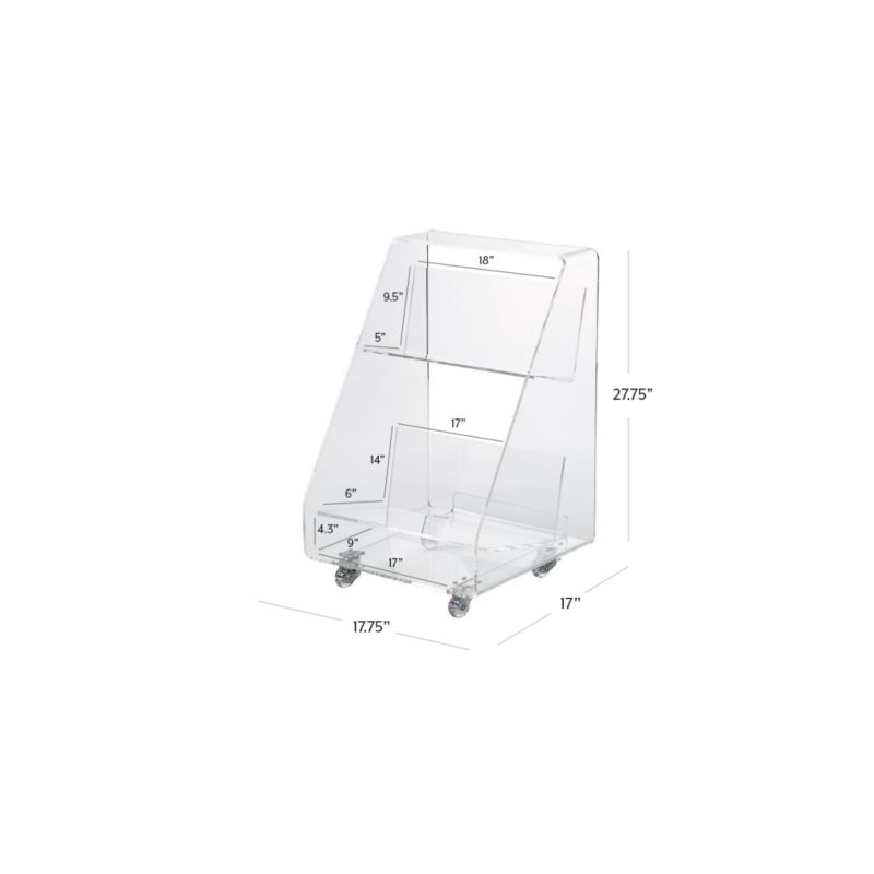 For our next trick, we're going to make your bookshelf disappear. Well, not really, but we will allow you to replace it with this modern, seamless bookcart. The clear, acrylic construction makes your books appear as if they're floating. Plus, the rolling casters make it easy to move from one corner of the room to the other.