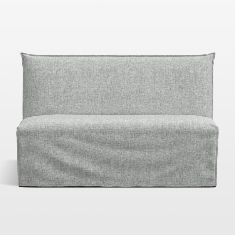 Our slipper-style dining banquette is all dressed for dinner, donning a natural linen-blend slipcover that manages to look both casual and elegant. Skimming the armless hardwood frame and generously padded seat, the full-length slipcover has an informal, unconstructed air that's minimally detailed with hand-sewn French seams in the front and along the back. We love the slipcovered bench's graceful silhouette and to-the-floor coverage.