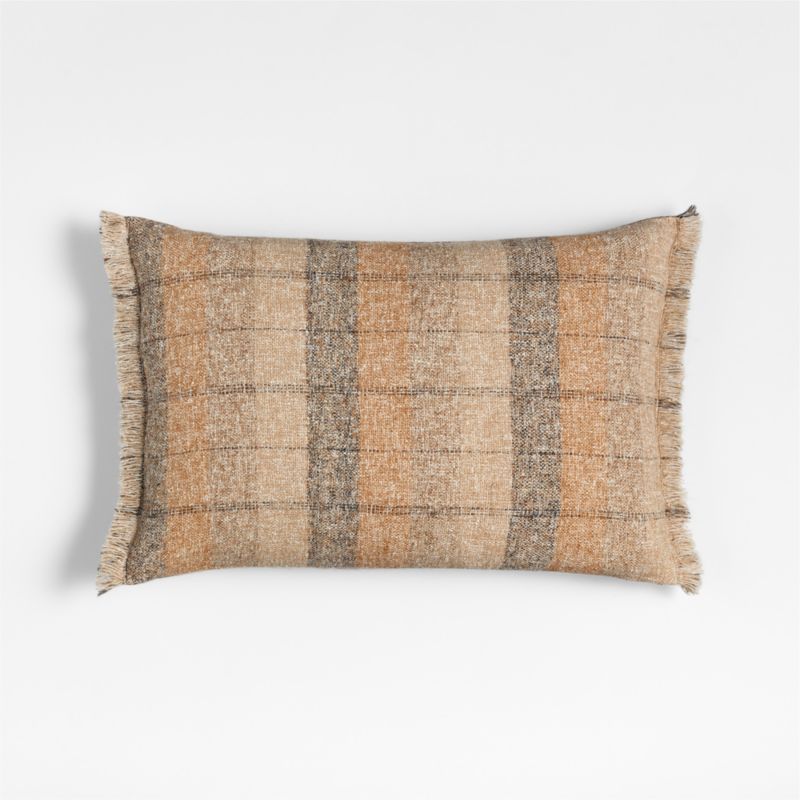 We love the way our Agnes pillow ties together the rest of a throw pillow collection. Melange-woven for a soft and subtle look, the tonal wool blend is patterned in wide vertical stripes and horizontal ticking stripes (or flip it over to show off the heathered solid side). Fringes finish two edges of the pillow for a final touch of coziness. Our exclusive lumbar throw pillow includes your choice of a plush feather-down or lofty down-alternative insert.