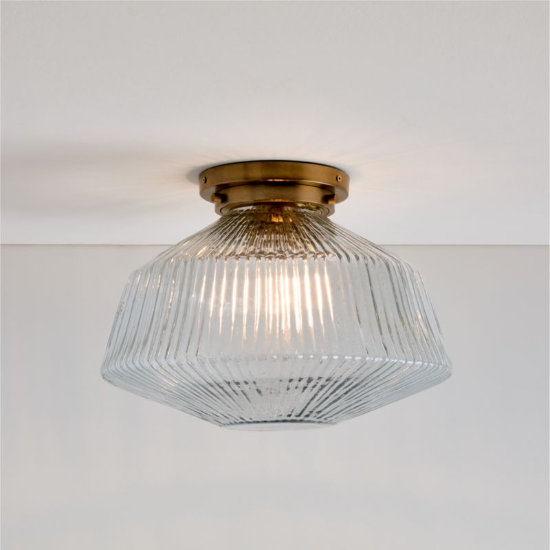 Subtly sparkling ribbed glass complements the warmth of antique brass in our Aiden flush mount light. Faceted and textured with fine lines, the glass shade softly obscures the bulb within for a more diffuse glow. Install the Aiden ceiling light in a walk-in closet, above a sink or down a hallway for useful illumination with a look that's refined without being fussy.