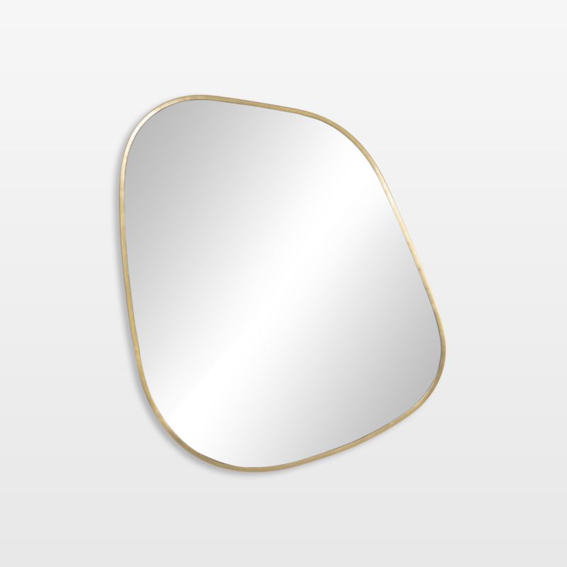 The Aimee mirror imbues contemporary form with timeless elegance. A slim frame of hand-forged iron traces Aimee's fluid asymmetrical curves, adding character and texture to the sleek contours. An antique brass finish defines the shape while adding a hint of glitz.
