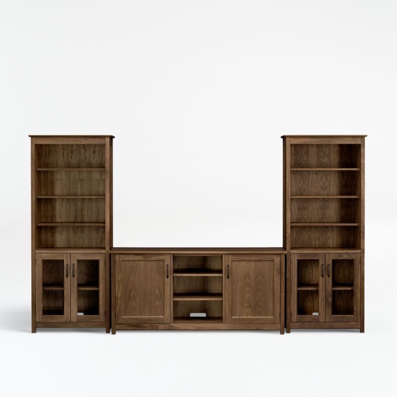 • Tate 124" Walnut Storage Media Console and Bookshelf Set