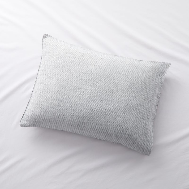 Woven out of fiber made from the outer layer of a benign cultivar of Cannabis sativa, our hemp pillow sham feels amazingly soft and light against the skin. The naturally breathable sham keeps you cool and comfortable throughout the night. Patterned one one side with a petite black-on-off-white grid, the pillow sham reverses to slender black and off-white stripes and features flange tailoring and a side closure with inner flap.