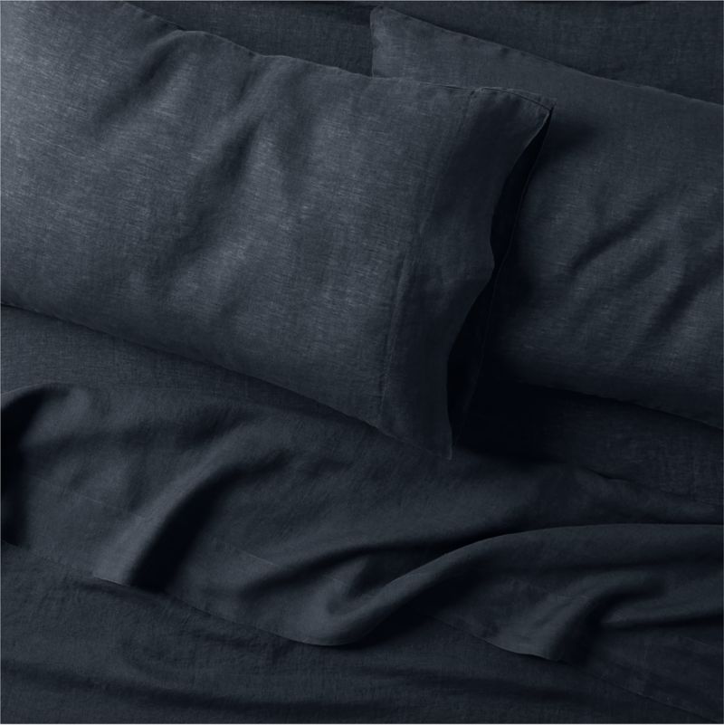Aire Natural Hemp Midnight Navy Blue Queen Bed Sheet Set