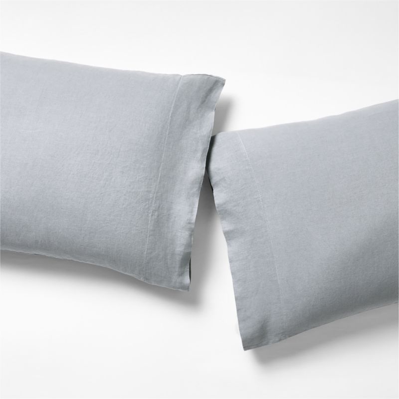 Make a modern bed with these hemp pillowcases in a washed, muted blue that's utterly dreamy. Woven out of fiber made from the outer layer of a benign cultivar of Cannabis sativa, our hemp bedding feels amazingly soft and light against the skin. The naturally breathable fabric keeps you cool and comfortable throughout the night. This serene pillowcase set mixes and matches effortlessly with the other colorful and neutral bedding in our exclusive hemp collection.