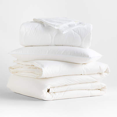 Make a dreamy bed—and save—with this complete queen bedding set in cloud white. Woven out of fiber made from the outer layer of a benign cultivar of Cannabis sativa, our hemp bedding feels amazingly soft and light against the skin. The naturally breathable sheets, duvet cover and pillow shams keep you cool and comfortable throughout the night.