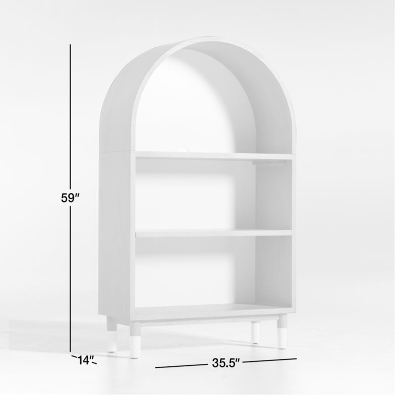 Give the kids room, study zone or shared living space real curve appeal with our ash wood Aksel Arched bookcase. Three fixed shelves provide plenty of room for books, toys, craft supplies and more, and their low height makes them easily accessible to toddlers, big kids and adults. The natural-colored bookcase is elevated on four post legs that are painted white for modern two-tone styles. Pair the bookcase with the matching Aksel kids desk and hutch for a streamlined space that works hard while looking good.