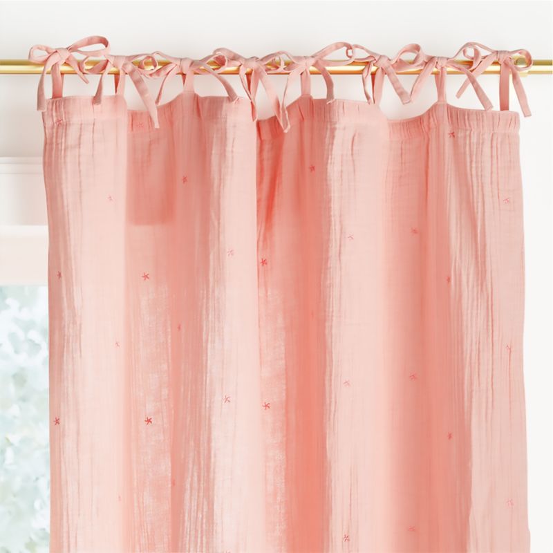 Add a little star power to your kids room. Our Aldrin sheer curtain panel is tailored of pure organic cotton that's gauzy and lightweight—the perfect combination to filter light and make a nursery or bedroom feel open, airy and calm. Monochromatic embroidered stars delight even the youngest stargazers, and the whisper-soft fabric and tone-on-tone pink palette create a peaceful setting for drifting off to sleep.
