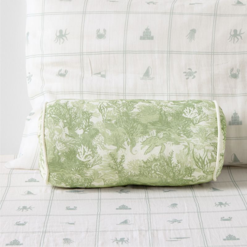 For our Alexander bolster pillow, designer Jake Arnold took the classic toile and reimagined it as something altogether more dreamy—an underwater scene of sea turtles, starfish and coral. Crafted of durable organic cotton, the pillow plays especially well with the soft, beachy hues of the designer's seaside-inspired bedding collection.