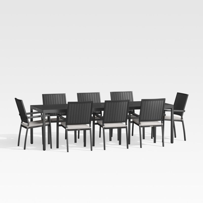 Alfresco 103" Black Metal Outdoor Dining Table Set with Silver Sunbrella ® Cushions