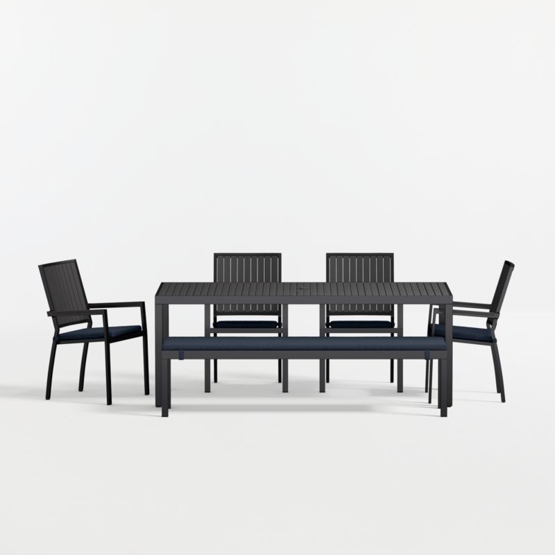 • View Alfresco 78" Black Metal Outdoor Dining Table Set with Bench and Canvas Navy Sunbrella ® Cushions - image 3 of 10