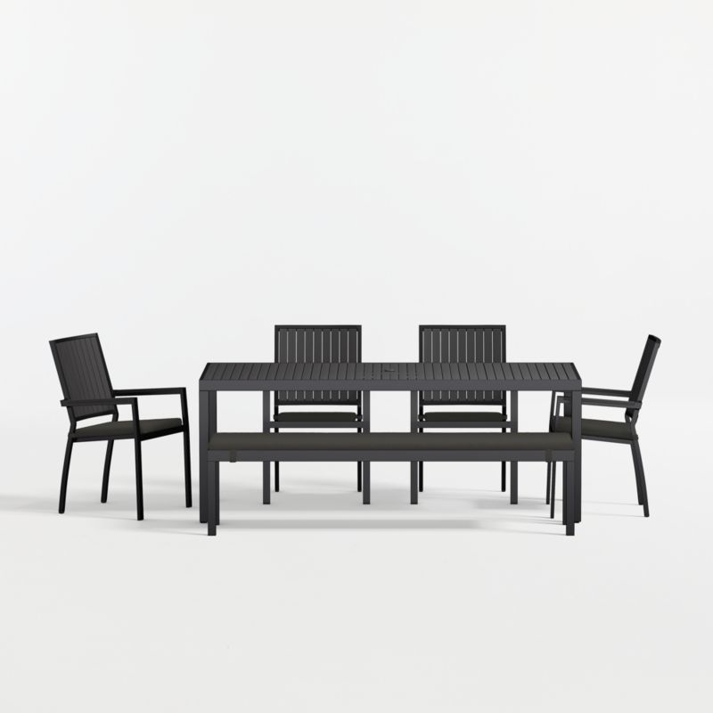 • View Alfresco 78" Black Metal Outdoor Dining Table Set with Bench and Cast Charcoal Sunbrella ® Cushions - image 5 of 12