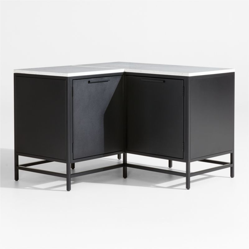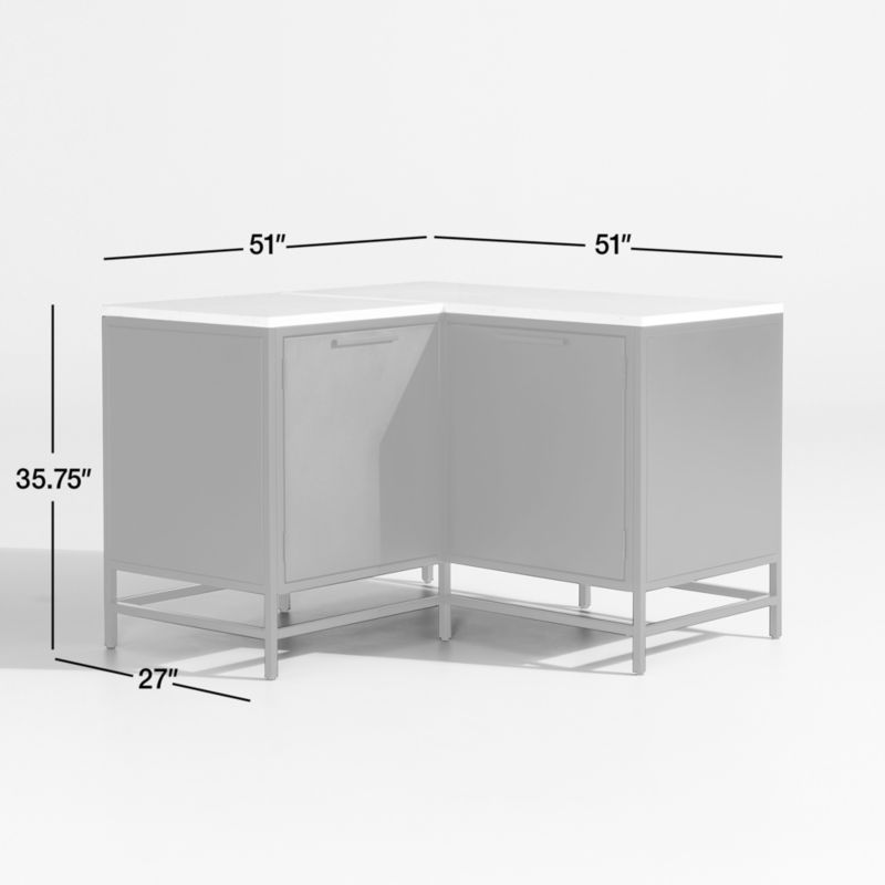Easy, breezy Alfresco has a contemporary look that always feels fresh. Well-made with waterproof materials, the outdoor kitchen collection is designed to welcome warm-weather entertaining season after season. The corner cabinet features a honed white quartz top rich with marble-like veining. The right-angled design features two closed cabinets, each with an adjustable or removable interior shelf. Levelers and clips help align the cabinet with our other exclusive Alfresco storage pieces for an outdoor kitchen that looks custom-designed.