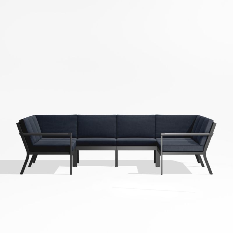 Alfresco Black Metal 6-Piece Petite U-Shaped Outdoor Sectional Sofa with Navy Blue Sunbrella ® Cushions