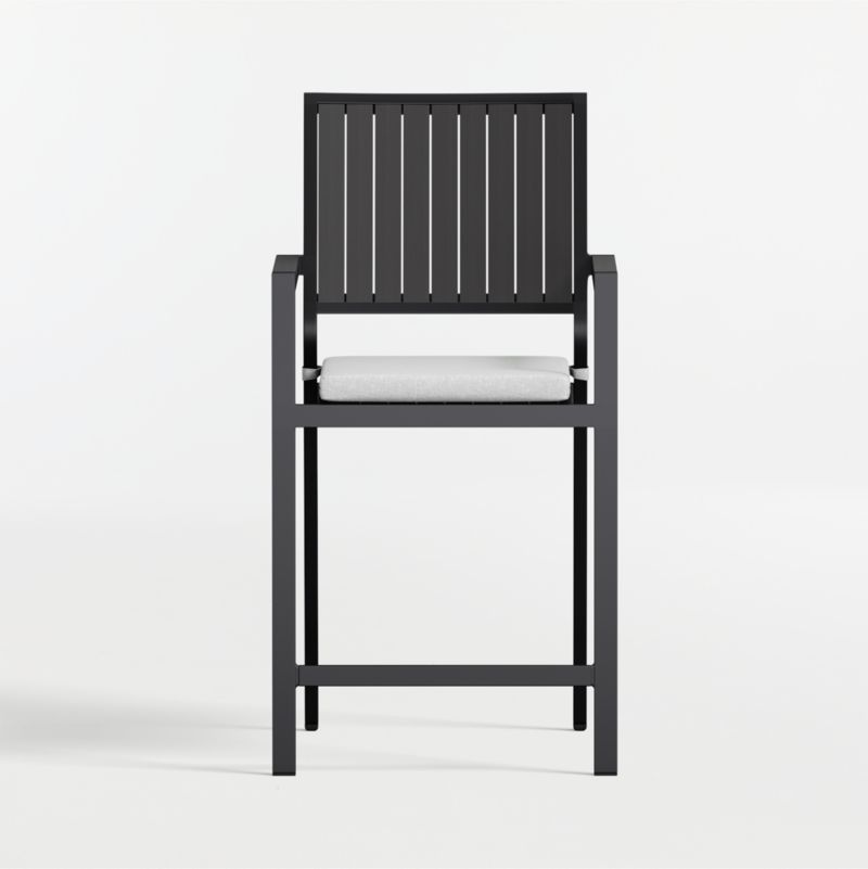 Easy, breezy Alfresco has a contemporary look that always feels fresh. Well-made with waterproof materials, it's designed to welcome warm-weather lounging season after season. The counter stool's rustproof aluminum frame with faux wood slats that emulate the look of real wood is finished in a durable black powdercoat. The cushion is covered in Sunbrella fabric, an unrivaled outdoor performance material available in your choice of colors.