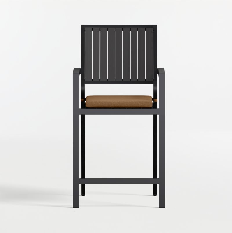 Alfresco Black Metal Outdoor Counter Stool with Cast Teak Sunbrella ® Cushion