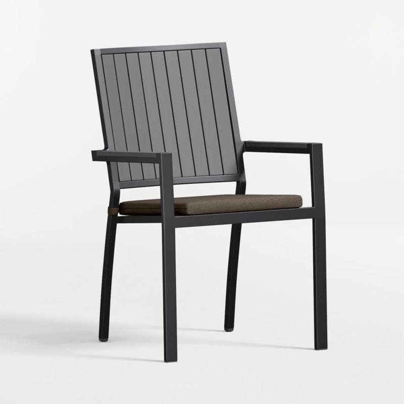Easy, breezy Alfresco has a contemporary look that always feels fresh. Well-made with waterproof materials, it's designed to welcome warm-weather lounging season after season. The chair's rustproof aluminum frame with faux wood slats that emulate the look of real wood is finished in a durable black powdercoat. The cushion is covered in Sunbrella fabric, an unrivaled outdoor performance material available in your choice of colors.