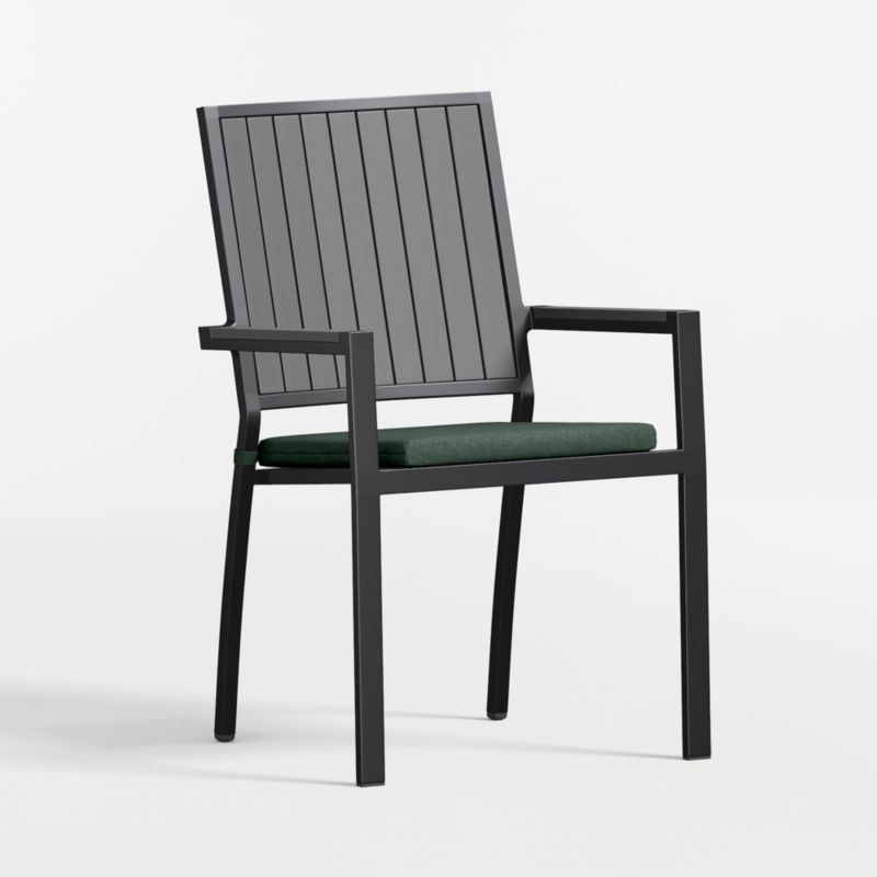 Alfresco Black Metal Outdoor Dining Armchair with Cast Ivy Sunbrella ® Cushion36"Hheight22.75"Wwidth22.5"DdepthMeasurements are in inches.