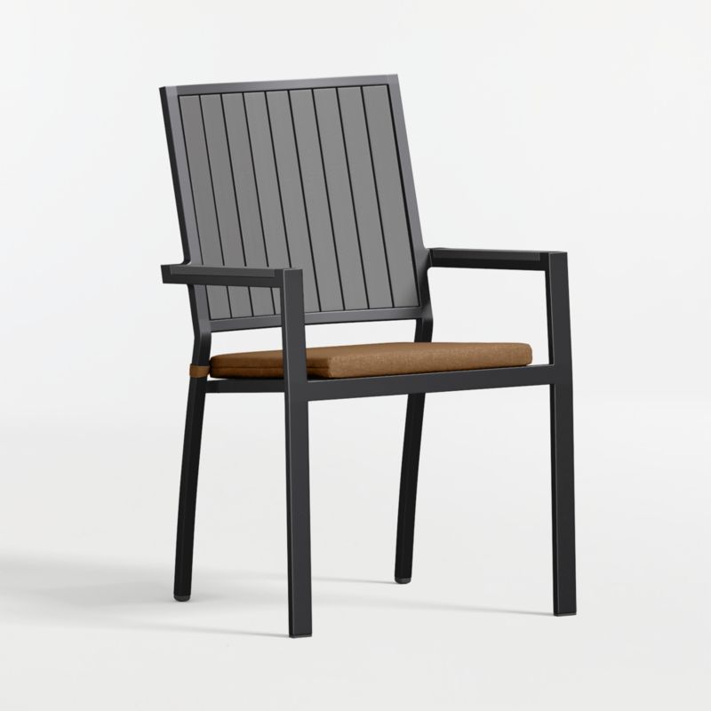 Alfresco Black Metal Outdoor Dining Armchair with Cast Teak Sunbrella ® Cushion