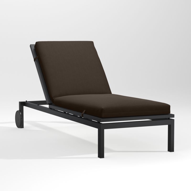 Alfresco Black Metal Outdoor Sun Lounger with Canvas Java Sunbrella ® Cushion14"Hheight32.75"Wwidth78.5"DdepthMeasurements are in inches.