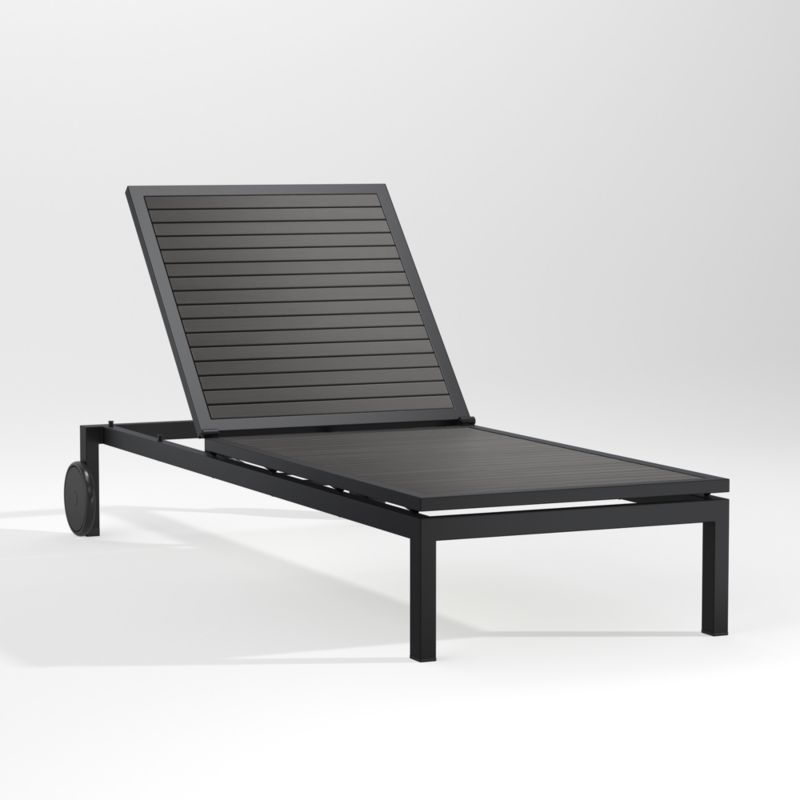 Our Alfresco outdoor furniture collection emulates the look of real wood with clean lines and all-weather durability. Finished in sleek black, the chaise lounge sets faux wood slats within a sturdy yet lightweight aluminum frame. Rear wheels let you follow the sun or shade all day long, and the push-button gas mechanism lifts and lowers the back to your desired position. Add on a layer of comfort with coordinating cushions, sold separately.