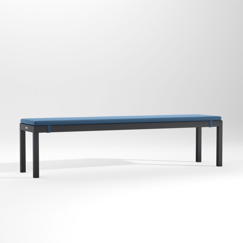 Easy, breezy Alfresco has a contemporary look that always feels fresh. Well-made with waterproof materials, it's designed to welcome warm-weather lounging season after season. The bench's rustproof aluminum frame with faux wood slats that emulate the look of real wood is finished in a durable black powdercoat. The cushion is covered in Sunbrella fabric, an unrivaled outdoor performance material available in your choice of colors.