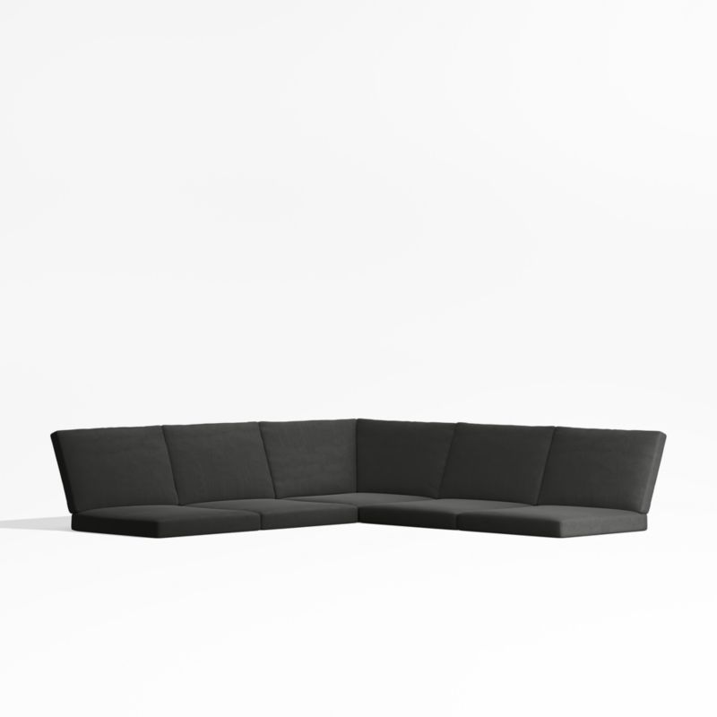 Add a layer of comfort to your Alfresco outdoor sectional with these sleekly tailored cushions. Covered with all-weather Sunbrella fabric in charcoal grey, our exclusive cushions keep your three-piece L-shaped sofa looking fresh all season long.