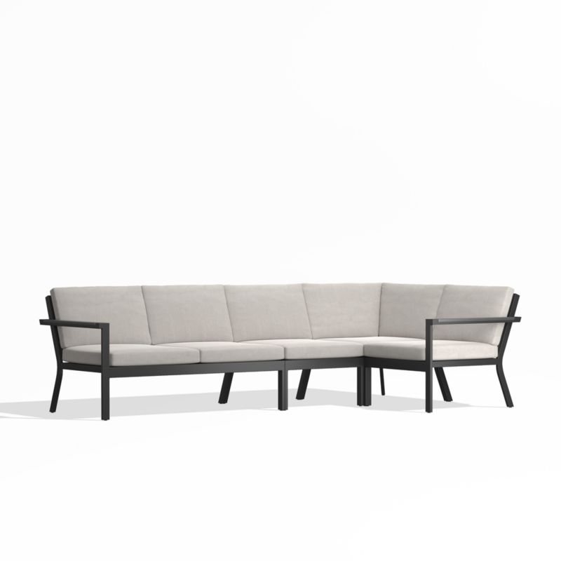 Easy, breezy Alfresco has a contemporary look that always feels fresh. Well-made with waterproof materials, it's designed to welcome warm-weather lounging season after season. The sectional's rustproof aluminum frame with faux wood slats that emulate the look of real wood is finished in a durable black powdercoat. Cushions are covered in Sunbrella fabric, an unrivaled outdoor performance material available in your choice of colors.